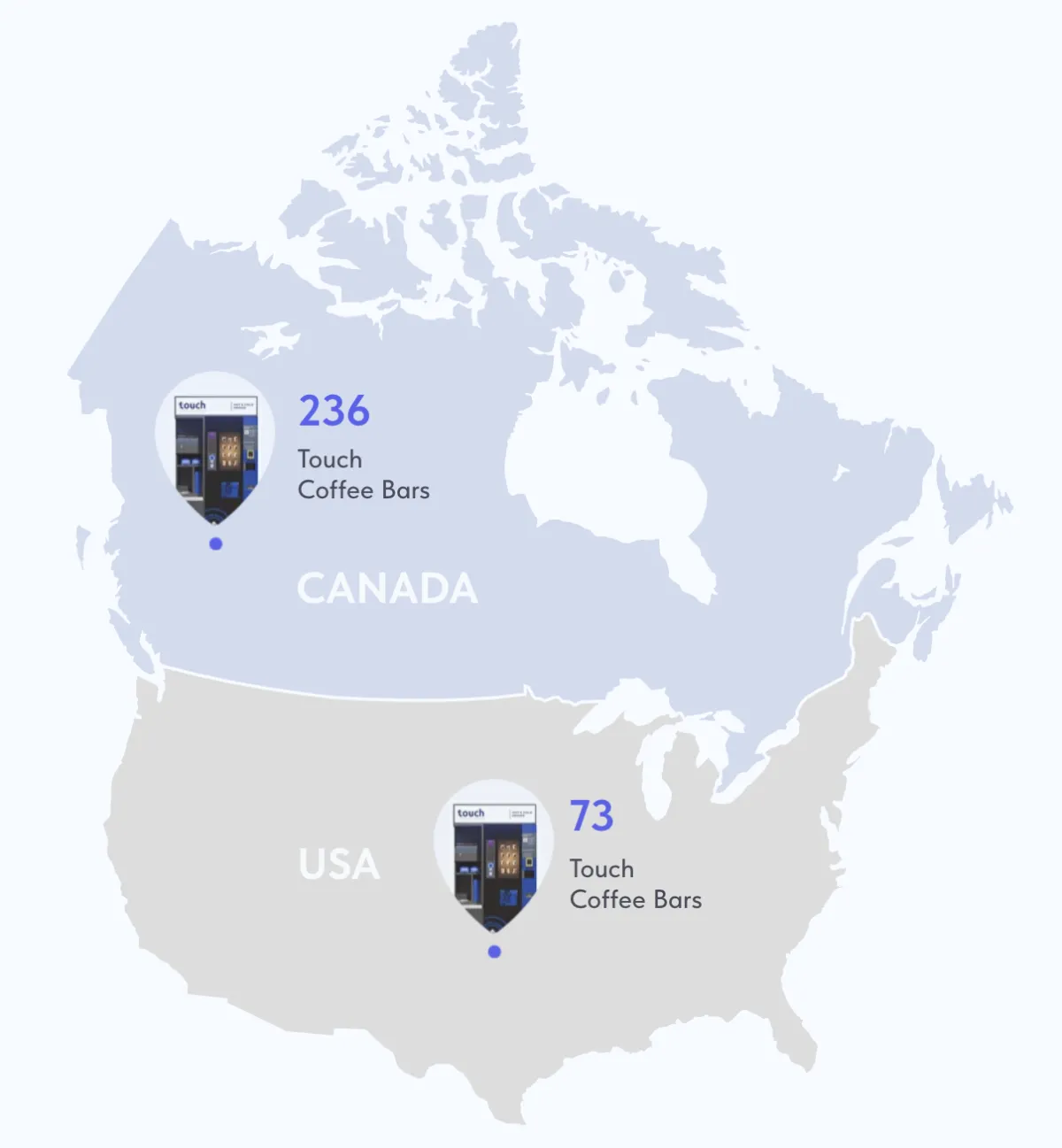 From coast to coast, Touch Coffee Smart Bars are popping up across Canada and the US—already over 150 locations open and expanding faster every month.